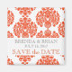 Elegant Grey, Orange White Damask Save the Date Magnet. Customise with your wedding date and bride and groom names and background colours.
