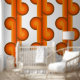 This design features contemporary geometric circles and vertical lines in shades of red, dark brown, and bright orange on a white backdrop. It's an ornate, elegant, yet funky hipster pattern, perfect for the artistic interior designer, the artsy fashionista, the trendy hipster, lovers of vintage retro, nouveau deco art, or abstract digital geometric motifs. It's available across a range of modern home decor items, ideal for decorating a master or children's bedroom, kitchen, nursery, living or family room, woman's cave, college dorm, condo, studio, or apartment.