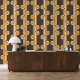 This design features contemporary geometric circles and vertical lines in shades of ivory, and yellow orange on a dark brown backdrop. It's an ornate, elegant, yet funky hipster pattern, perfect for the artistic interior designer, the artsy fashionista, the trendy hipster, lovers of vintage retro, nouveau deco art, or abstract digital geometric motifs. It's available across a range of modern home decor items, ideal for decorating a master or children's bedroom, kitchen, nursery, living or family room, woman's cave, college dorm, condo, studio, or apartment.