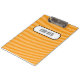 Beautiful bright orange and orange sherbet diagonal stripes clipboard, perfect for teachers, parents, coaches, business professionals, has an area you can easily add a name to personalise it.