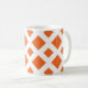 A bold, geometric pattern of large and small orange diamonds on a white background. The white forms a lattice which separates the vibrant orange diamond shapes.