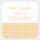 Baby shower thank you favour tag sticker in elegant bright orange and white casual and fun polka dots pattern. Customisable with your own text, contact us for a colour change. The perfect way to decorate your baby shower favours and thank your guests for being a part of your special day.