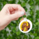 Keychain with illustration of head of a cute little orange dragon in yellow circle, cute fantasy / fairy-tale design for kids by Maxi Harmony,