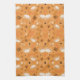 Orange fabric pattern with white sheep tea towel