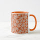 This design features a bold and vibrant pattern of fall leaves and acorns set against a striking orange background. The design showcases various types of leaves, including oak, maple, and other deciduous trees, all illustrated in a soft, cream colour with delicate line details that emphasise their veins and edges. Scattered among the leaves are small acorns, pine cones, and clusters of berries, adding texture and variety to the pattern. The contrast between the warm orange backdrop and the pale leaves creates a dynamic and eye-catching design, perfectly capturing the essence of the autumn season with a modern, graphic twist.