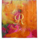 This fun shower curtain has a background photograph of orange, yellow, hot pink, and green feathers. Monogram is pale yellow. A colourful, fun, unique home decor gift for a wedding or housewarming. All Rights Reserved © 2015 Alan & Marcia Socolik.