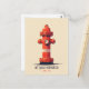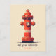 This light-coloured postcard features an orange-white fire hydrant illustration and a customisable motto. The default text "at your service" provides a humourous way to tel your friend / family that you are there for them with a customisable "since XXXX" signature.
