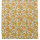 A nostalgic shower curtain with a floral pattern in retro shades of green, orange and yellow.