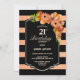 Orange Floral Black Striped 21st Birthday Dinner Invitation