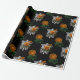 Orange Floral Skeleton Torsos on Black Wrapping Paper