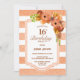 Orange Floral Striped 16th Birthday Party Invitation