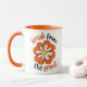 A coffee mug featuring a vibrant orange power flower, with the phrase "Break from the Grind" centred around the image. The design suggests a burst of energy and positivity, offering a sense of escape and rejuvenation.