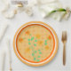 Decorative paper plates with a fancy pattern accented with orange floral design. All frames and background colors can be changed to any color. All elements are removable. Text can be added to personalize.