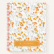 Botanical pattern with orange flowers and green leafy branches. This notebook can be personalised to add a name or subject on the cover.