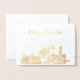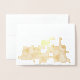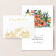 Orange Flowers Hummingbird Birthday Gold Foil Card