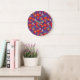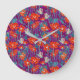 Orange flowers on purple throw pillow large clock