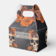 Elevate your favours with an enchanting touch. Our favour box features delicate blooms inspired by the boho gothic skull design, creating an ethereal atmosphere. The flowers gracefully encircle the base and crown the handles, framing the names "Jessica & Matthew" and your special date. This box is a heartfelt token of gratitude, exuding charm and enchantment, making each favour even more memorable.