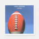 Pictured is a football and goal post. You may personalise this napkin.