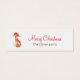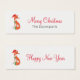 A skinny business card with a cute orange fox illustration. He is wearing a red santa hat and has festive green decorative accents on his tail and across his chest. Personalise with your name. Merry Christmas and Happy New Year written on the front and back. Text can be customised to suit your needs.
