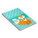 It's easy to personalise this colourful chevron stripe and orange fox notebook with a name before ordering! Features aqua and white chevron stripes with a cute orange chevron stripe fox with an area you can easily customise with a name!