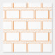 This pattern of orange squares and rectangles of varying but consistent sizes creates a striking repeating horizontal design. The orange is bright, so it can be a bold pattern in a smaller space, or a more subtle brick-like design in a larger room. It is both retro and modern, reminiscent of outdoor brick patterns while still being a clean design for indoors. In smaller spaces, this can work as the framing for a small art gallery. Used as a type of wainscoting along the lower wall, the rectangles create frames for art work and photos of friends and family so that your smaller children can see them. Invite elementary-aged kids to create small pieces of their own art within the rectangles. Or hang these up higher on a wall so that your teen or college dorm student can create their own art collage of different items. Design description: Horizontal stripes of orange rectangles with white interiors. The rectangles range in size, but most are wider than they are tall, some are nearly square. Across a row, the rectangles are a consistent height, so that your eye moves across them smoothly. Within a row, the rectangles have different widths. Every fourth row, there is a taller group of rectangles. The pattern repeats so that our eyes and brains are comfortable with it, but there are enough different sized rows and rectangles to create visual interest.