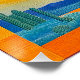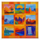 This vibrant abstract art print features an orange-framed grid of bold desert landscapes. Each panel highlights a unique geometric scene, from desert mountains and cacti to waterfalls, rendered in bright hues of orange, blue, and green. The dynamic colours and structured grid layout make this piece a perfect addition to any modern home or office space. Ideal for abstract art lovers, this colourful desert grid brings energy and artistic flair to any room.