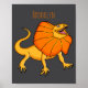 Orange Frilled Neck Lizard Cartoon Illustration Ba Poster