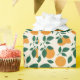 Fresh fruit pattern showcases vibrant oranges in a dynamic background.