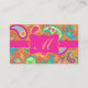 Orange Fuchsia Pink Modern Paisley Monogram Business Card