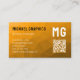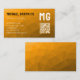 Orange geometric mesh pattern QR code Monogram Business Card