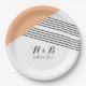 Modern and trendy Geometric Stripe Wedding Paper Plates with a orange triangle and thinly striped accent. These simple yet elegant plates are set up to be easily customised with your wedding information. Find more customisation options by clicking Customise It.
