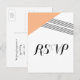Modern and trendy Geometric Stripe Wedding RSVP Postcard with an orange triangle and thinly striped accent. This simple yet elegant response postcard is set up to be easily customised with your wedding information. Find more customisation options by clicking Customise It.
