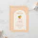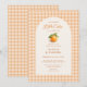 Orange gingham Little Cutie baby shower invitation featuring sweet citrus details and a classic gingham pattern. Perfect for celebrating a little cutie on the way with a fresh orange themed baby shower. Ideal for gender neutral celebrations, summer showers, and citrus inspired parties. Editable text for easy personalization. Print ready layout.