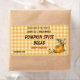Orange Gingham background with a lower right corner element of a pumpkin and chaff of wheat. Five lines of customisable text in coordinating colours of black and deep brownish red.