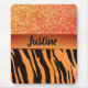 Orange Glam Glitter Tiger Print Personalized Mouse Mat