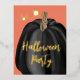 Orange Gold Script Pumpkin Halloween Party Foil Invitation Postcard
