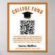 This modern orange and black custom graduation party college fund poster features a website QR code link for guests to contribute to your high school graduate's university expenses. Customise this print with your message, the school name, and year.