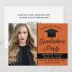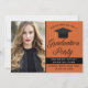 A classy custom photograph graduation invitation in orange and black for a high school, college, or university from the class of 2026. Customize with your school name and graduating class under the lovely calligraphy for an elegant personalized graduate photo invite with your senior portrait.