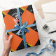 Creative orange graduation gift wrap and grad party decoration featuring a black cap with gold tassel. Edit text to add name of your favourite high school or college graduate.