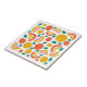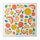 This ceramic tile features a colourful fruit pattern with grapefruit and orange slices, and small green leaves.
