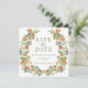 Orange green floral Save the Date photo invitation