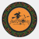 Orange Green Happy Halloween Witch And Bats Classic Round Sticker