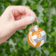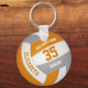 This sporty volleyball themed keychain for girls or boys features a realistic looking orange, grey and white volleyball upon which you can customise the player's name & jersey number plus school or club name and mascot name in a varsity letter style font - by katz_d_zynes