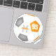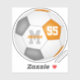 This team colours soccer sticker for girls or boys features the realistic image of a soccer ball that has orange, grey and white panels - customise the player's name, monogram and jersey number - by katz_d_zynes