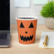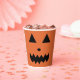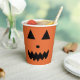 Orange Halloween paper cup featuring a funny pumpkin face for your Halloween party this year.