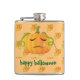 Orange Halloween Sad Pumpkin Seamless Pattern Hip Flask