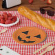 A happy Halloween pumpkin smiles up at you from these paper party plates. He wont judge what you eat, just that you have a great time on the best holiday of the year. Shop the scary pumpkin face for a cool mix and match look: