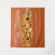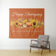 This orange pumpkin patch holiday party tapestry features a vintage drawing of orange pumpkins, fall leaves, and cute autumn sunflowers. Nostalgic Happy Thanksgiving decor with brown script of your business name and personalized professional message on the back for clients and friends.