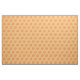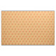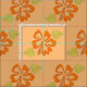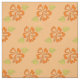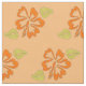 Fabric features rows of orange hibiscus flowers with green leaves, printed on a pale orange background. Created from an original marker illustration.