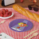 A strange looking orange head character in a spotlight. This design looks really effective on these Paper Plates